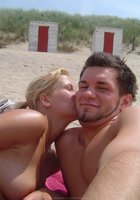Подборка карточек парочки из США, совместно проводящей летний отдых. Особенно хороши кадры, где блондинка отправляется на пляж с бойфрендом и снимает лифчик, показывая голые сиськи, ведь не стесняется своего сочного тела. Здесь же присутствуют пошлые снимки белокурой особы из номера отеля и квартиры.